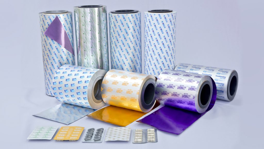 Aluminium blister foil suitable for hard packing of medical and pharmaceutical products such as pills, capsules, and tablets. The aluminium foil usually has a thickness of 25-28micron. It is heat seal coated on the bright side and print-treat coated on the matte side. All coatings are food safe, eco-friendly nature and meet health ministry requirements for direct contact with food or pharmaceuticals.